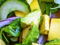 Her får du opskriften på en farverig salat med mango og avocado, som er super enkel at lave. Mangosalaten kan nydes som den er |